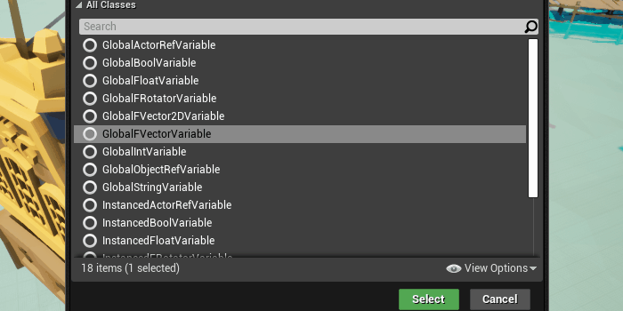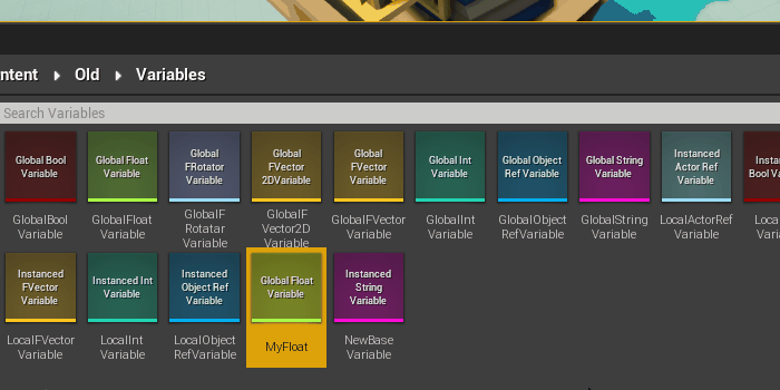 Creating variable assets is straight forward and can be done in 2 easy steps. First right-click inside your content browser and go to OutOfTheBox -> Variable.
